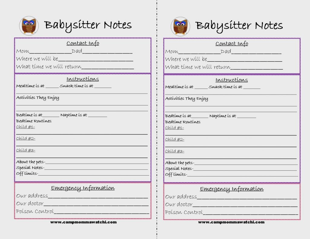 Free Printable Babysitter Notes | Camp Mommawatchi | Crafts And – Babysitter Notes Free Printable