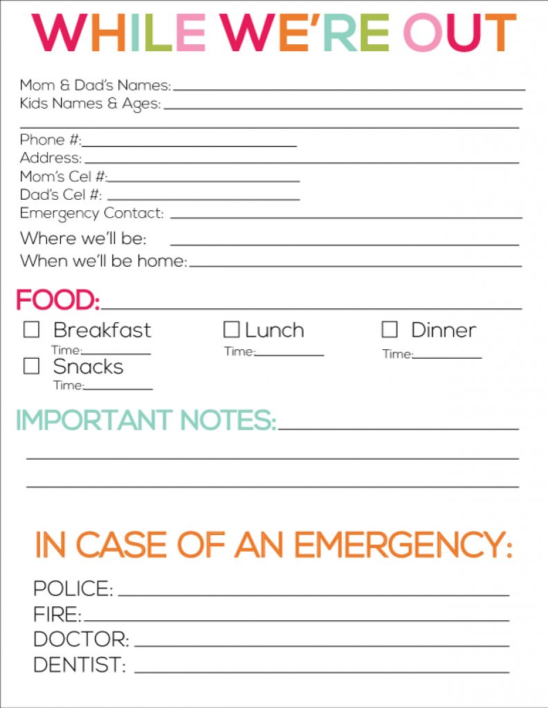 Babysitter Information Sheet With Free Printable | Children – Babysitter Notes Free Printable