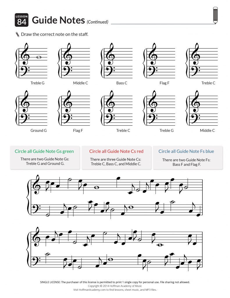Printables & Audio For Piano Units 1-5: Lessons 1-100 – Hoffman Academy – Beginner Piano Worksheets Printable Free