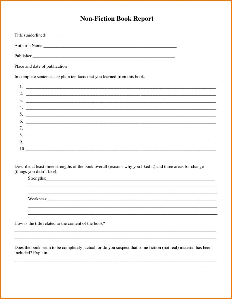 Free Printable Book Report Templates | Non-Fiction Book Report.doc – Book Report Template Free Printable