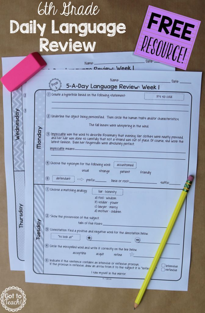 6Th Grade Daily Language Spiral Review – 1 Week Free – Daily Language Review Grade 5 Free Printable