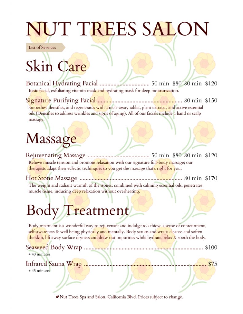 Salon Menu Templates From Imenupro – Design A Menu For Free Printable