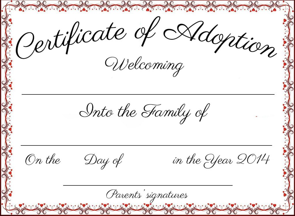 Adoption Certificate Template 40 Real Fake Templates Printable – Fake Adoption Certificate Free Printable