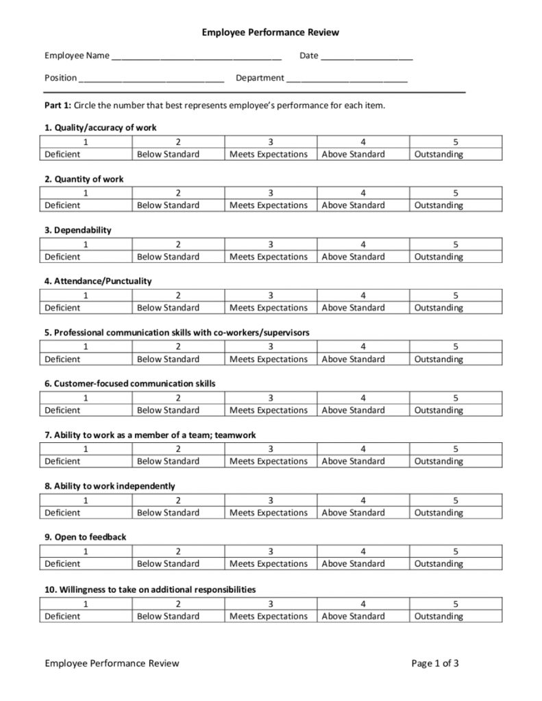 Employee Evaluation Form, Free Employee Evaluation Form Template – Free Employee Self Evaluation Forms Printable