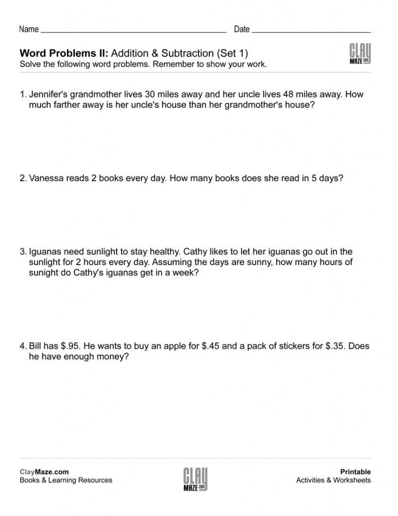 Word Problems Ii: Addition & Subtraction | Free Printable Children's – Free Printable 1St Grade Math Word Problems