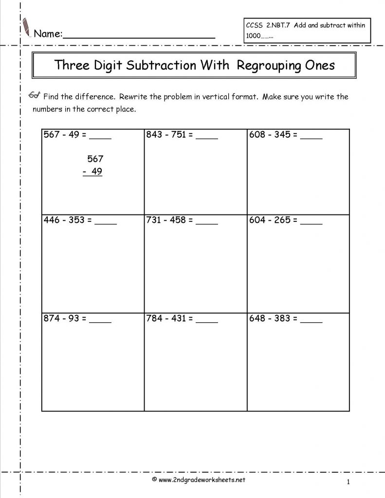 Our website offers wonderful computer records that one could individualize and printing on your own inkjet or laser beam inkjet printer. Free Printable 3 Digit Subtraction With Regrouping Worksheets