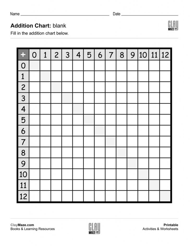 Addition Chart (Blank) | Free Printable Children's Worksheets – Free Printable Addition Chart