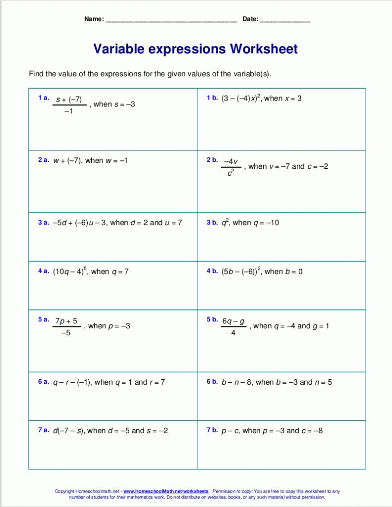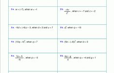 Free Worksheets For Evaluating Expressions With Variables; Grades 6 – Free Printable Algebra Worksheets Grade 6