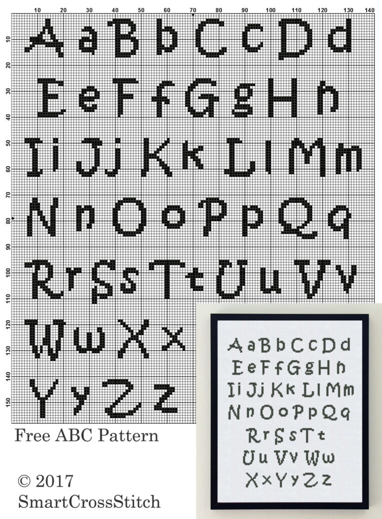 Free Cross Stitch Alphabet Pattern ''Abc'' – Font Embroidery – Free Printable Alphabet Cross Stitch Patterns