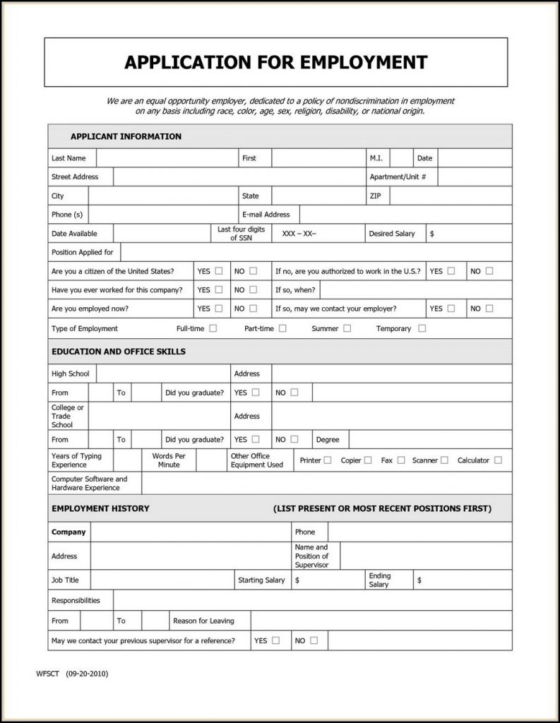 Free Printable Generic Job Application – Job Applications : Resume – Free Printable Application For Employment Template
