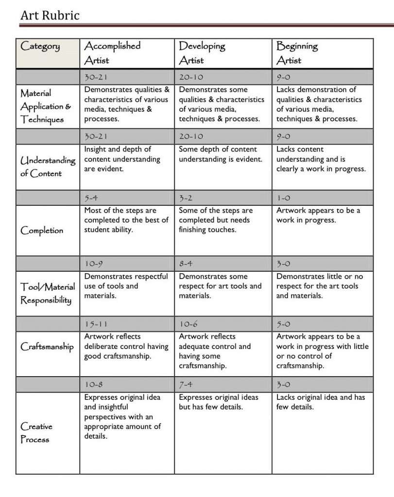 A Handy Rubric For Art Teachers | Assessment Tools & Ideas - Free Printable Art Rubrics