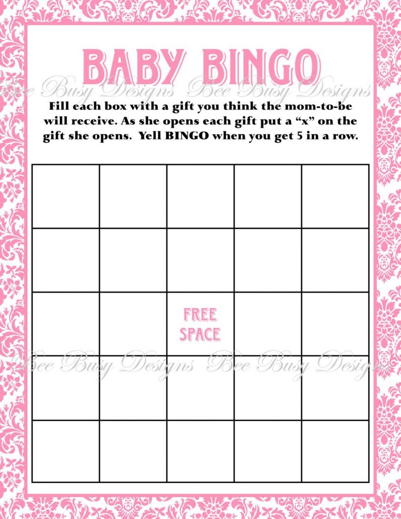 Printable Pink Damask Baby Shower Bingo Game Instant Download | Baby – Free Printable Baby Shower Bingo Cards Pdf