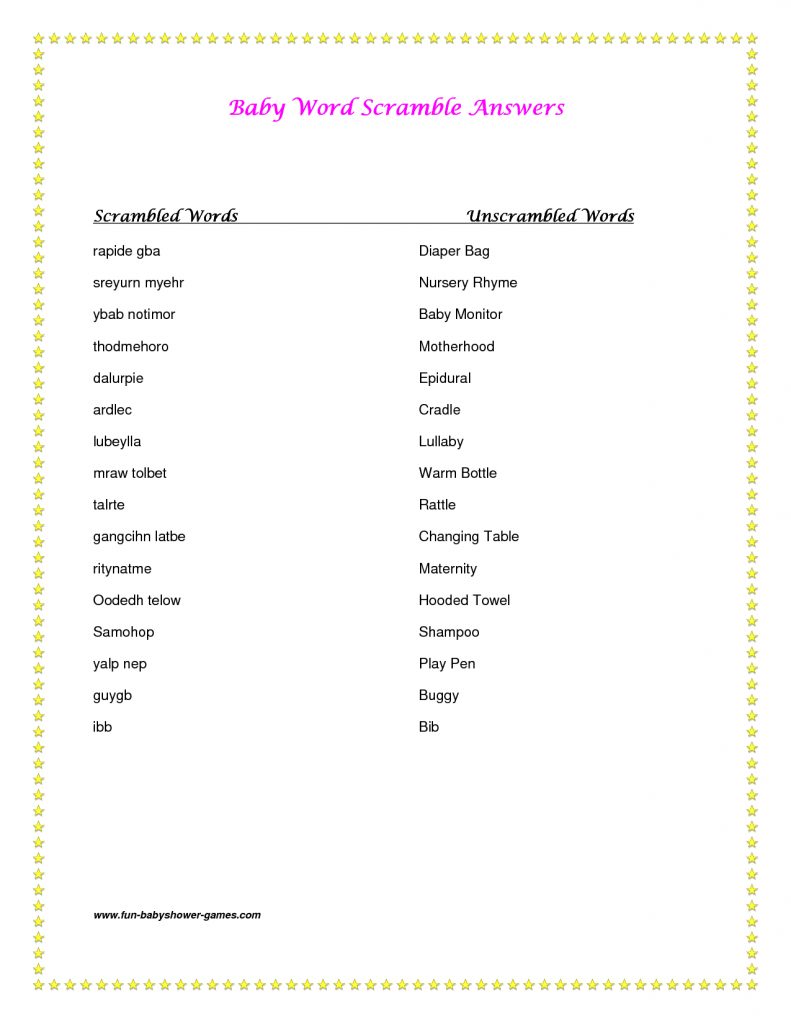 Free Printable Baby Shower Games. Download Fun Printable Baby Shower - Free Printable Baby Shower Games Word Scramble