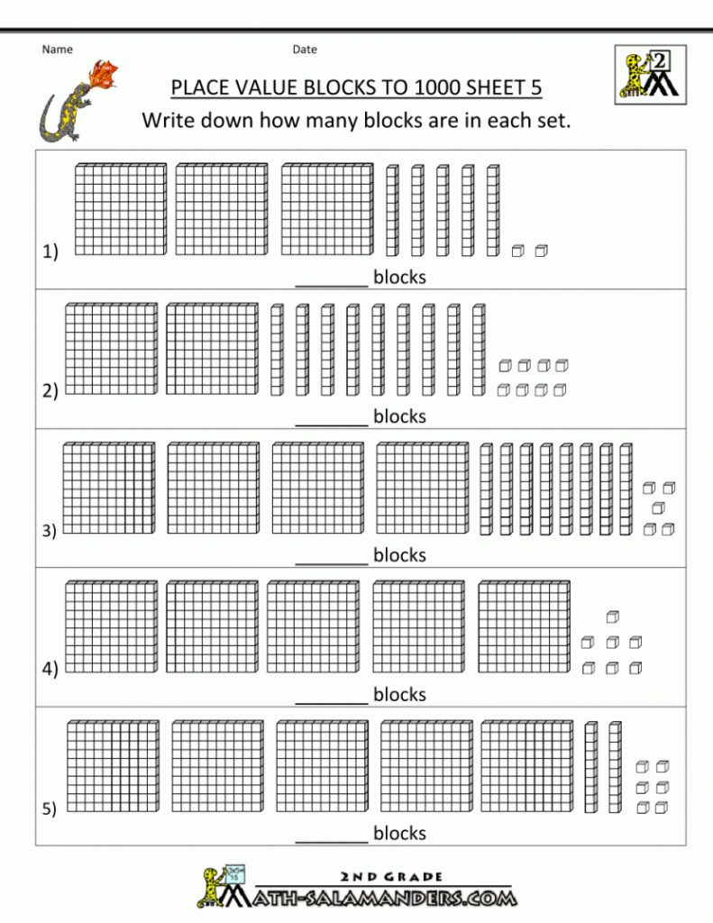 Second Grade Math Worksheets Place Value Blocks To 1000 4 | 2Nd – Free Printable Base Ten Block Worksheets