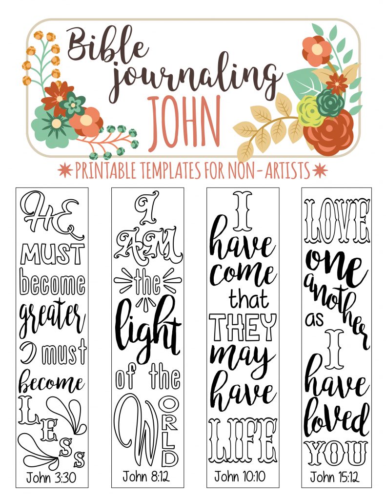 John – 4 Bible Journaling Printable Templates, Illustrated Christian – Free Printable Bible Bookmarks Templates