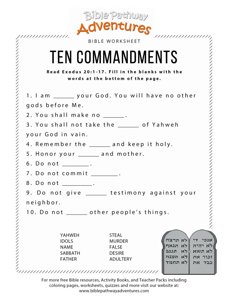 Ten Commandments Worksheet For Kids – Free Printable Bible Games For Kids