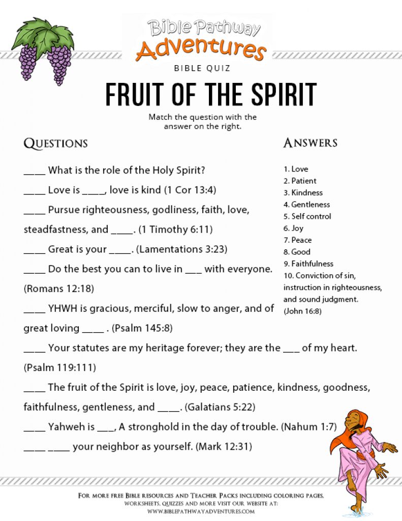 Printable Bible Quiz: Fruit Of The Spirit | Free Download Intended – Free Printable Bible Trivia Questions And Answers