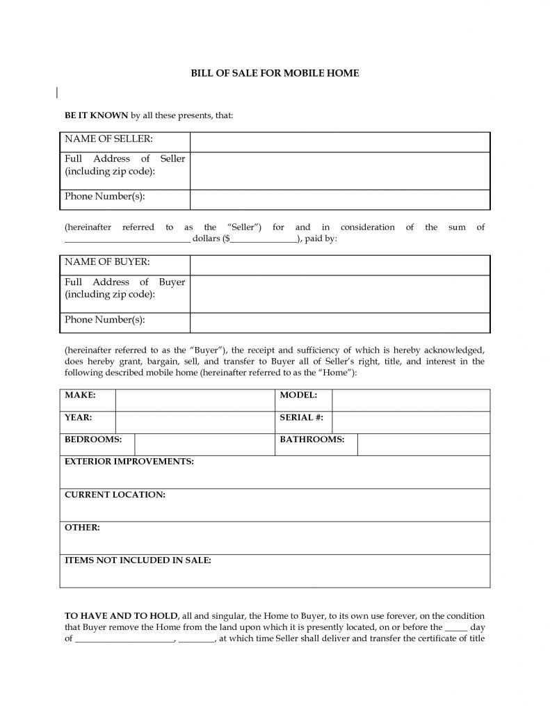 Free Mobile (Manufactured) Home Bill Of Sale Form – Word | Pdf – Free Printable Bill Of Sale For Mobile Home
