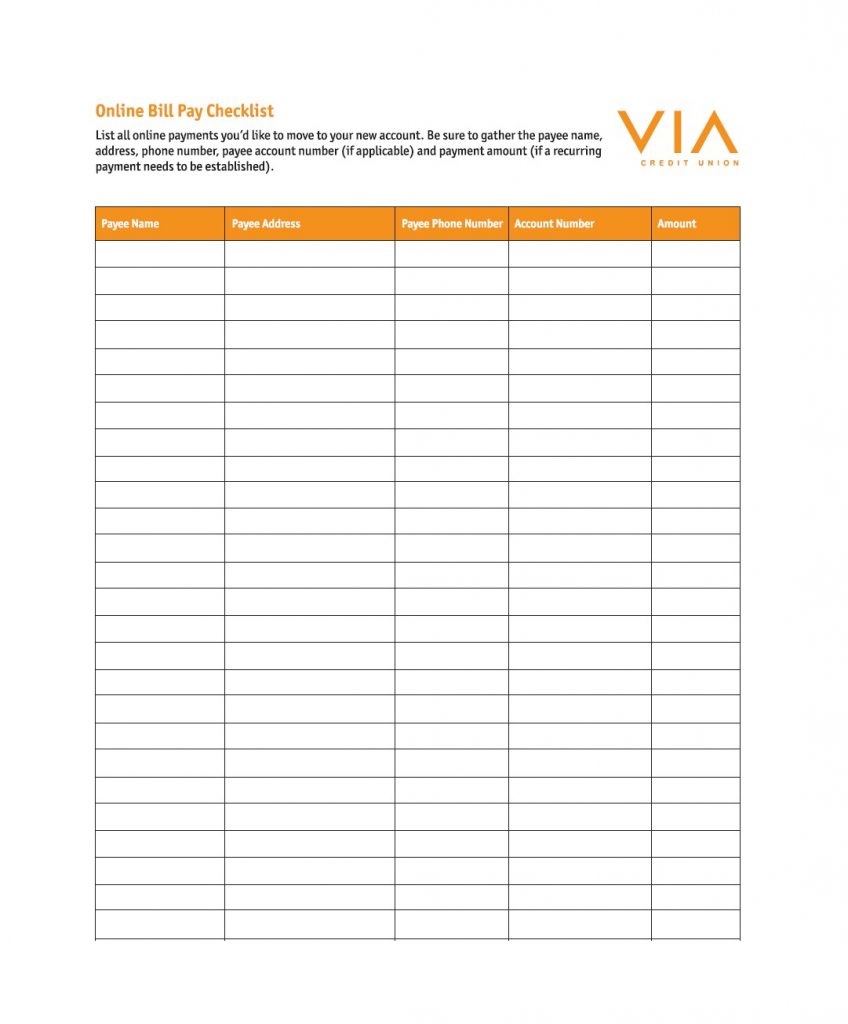 32 Free Bill Pay Checklists & Bill Calendars (Pdf, Word & Excel) – Free Printable Bill Payment Checklist