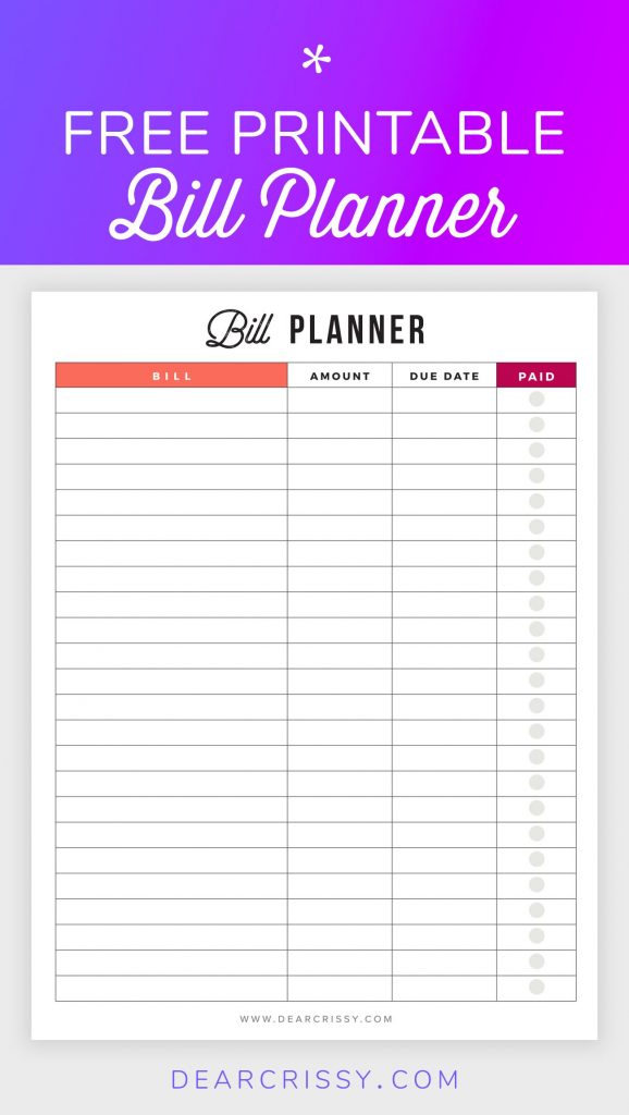 Our internet site provides stunning computer files that you can customize and printing on your inkjet or laser light printing device. Free Printable Bill Tracker