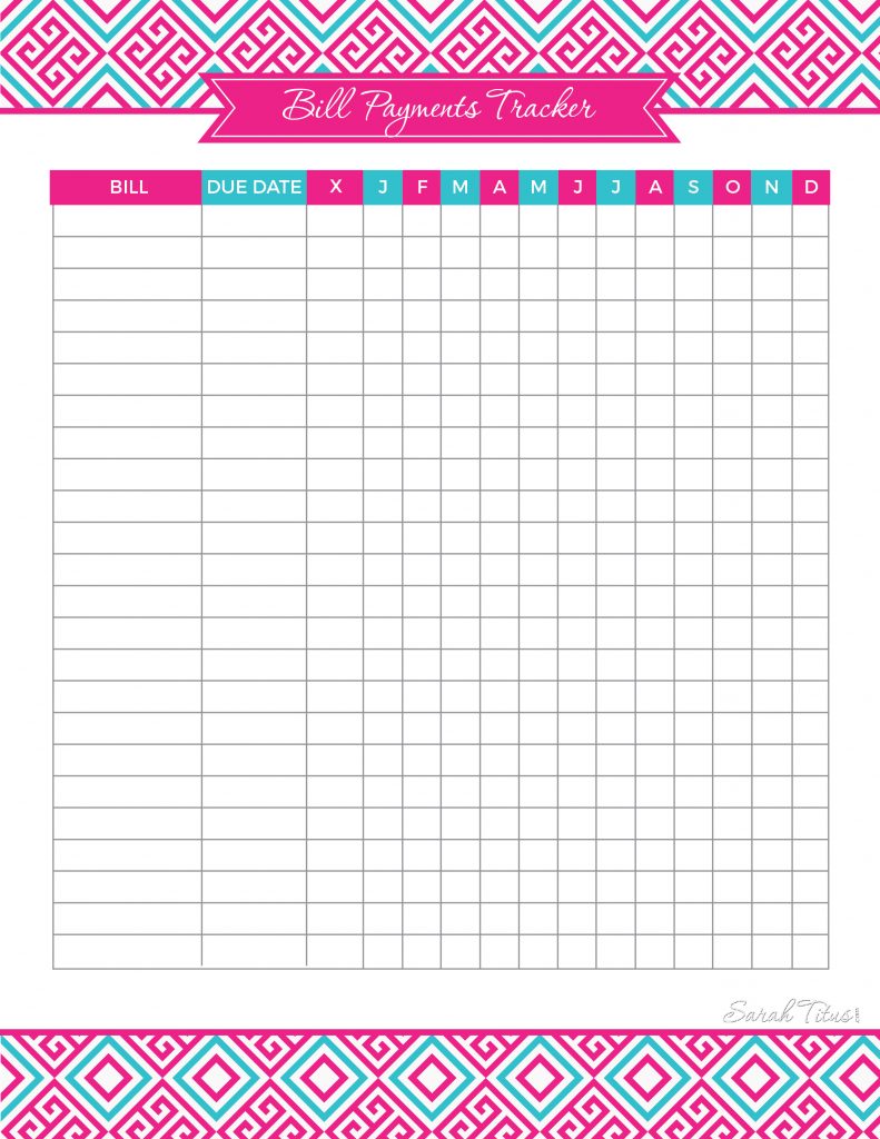 Free Printables Archives – Page 42 Of 47 – Sarah Titus – Free Printable Bill Tracker