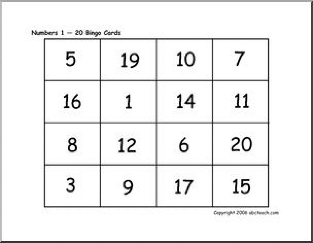 Bingo Cards: Numbers 1-20 | Abcteach Throughout Free Printable – Free Printable Bingo Cards With Numbers