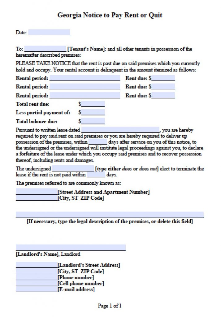 Free Georgia Notice To Pay Or Quit | Eviction Notice For Late Rent – Free Printable Blank Eviction Notice