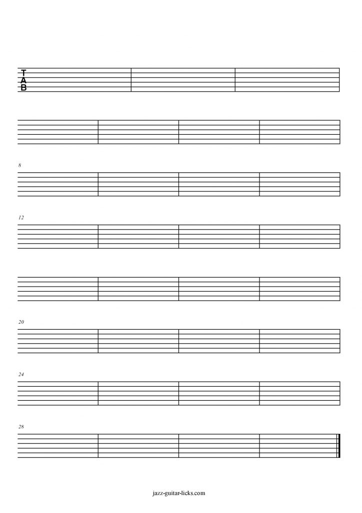 Printable Blank Guitar Tabs – Free Sheet Music | Jazz-Guitar-Licks – Free Printable Blank Sheet Music