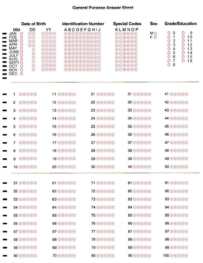 Bubble Answer Sheet 1-50 | 100 Question Bubble Answer Sheet – Free Printable Bubble Answer Sheets