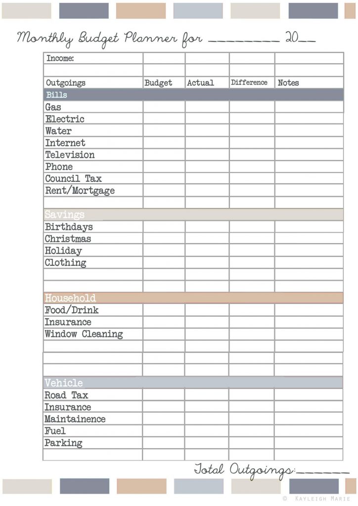 Budget Planner Spreadsheet Uk Free Printable Monthly Template - Free Printable Budget Template Monthly