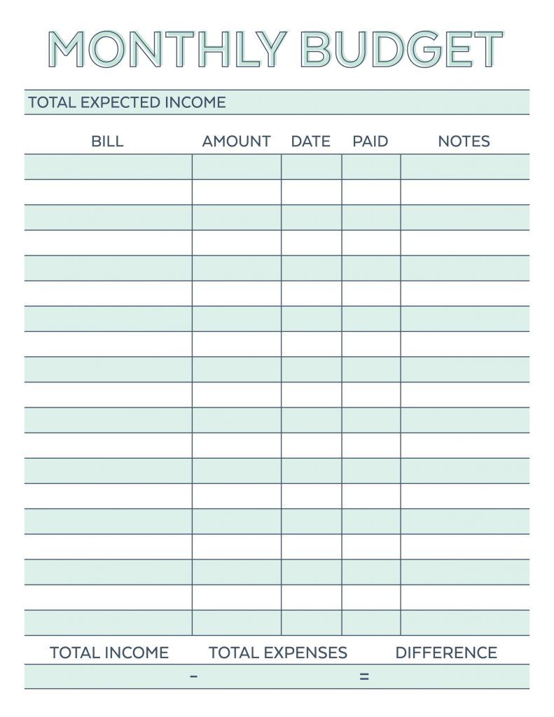 Monthly Budget Planner – Free Printable Budget Worksheet – Free Printable Budget Worksheets