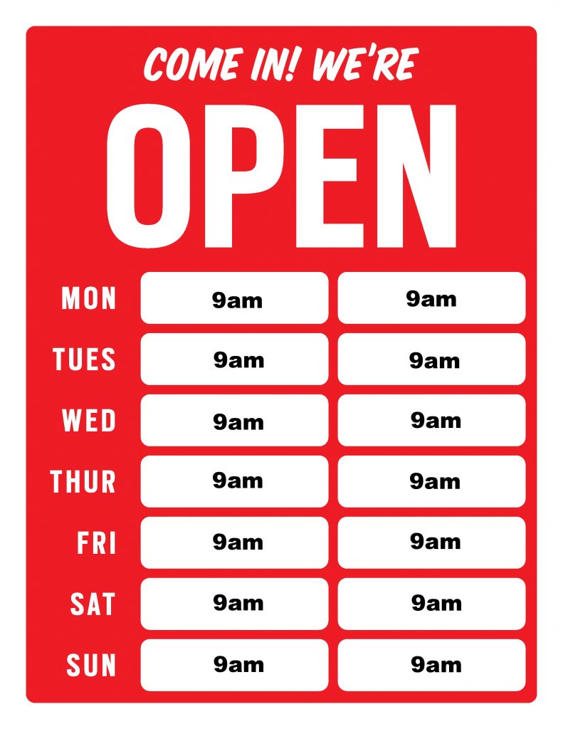 New Free Business Hours Sign Template | Wattweiler – Free Printable Business Hours Sign