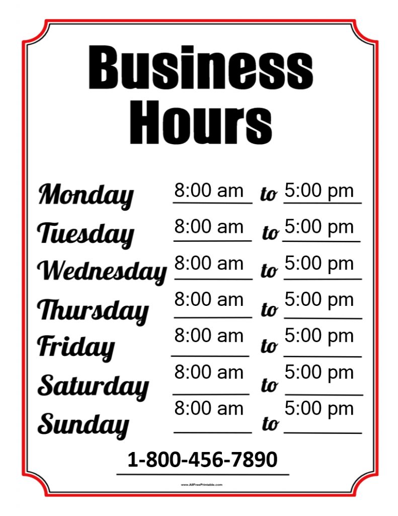 New Free Business Hours Sign Template | Wattweiler – Free Printable Business Hours Sign