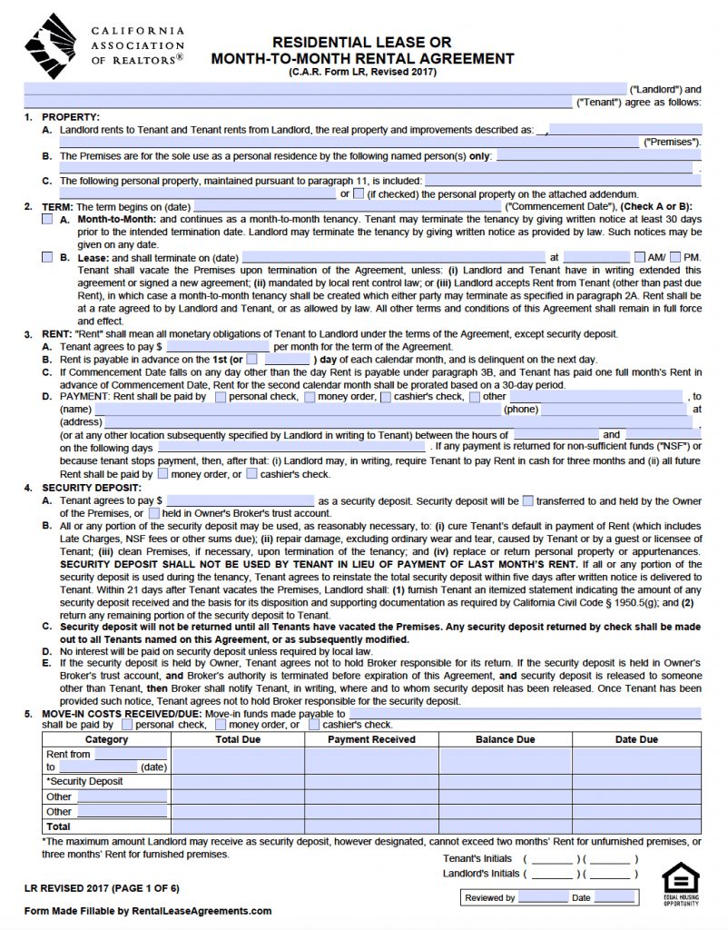 Free Rental Forms For Landlords To Print | Free Printable Lease – Free Printable California Residential Lease Agreement