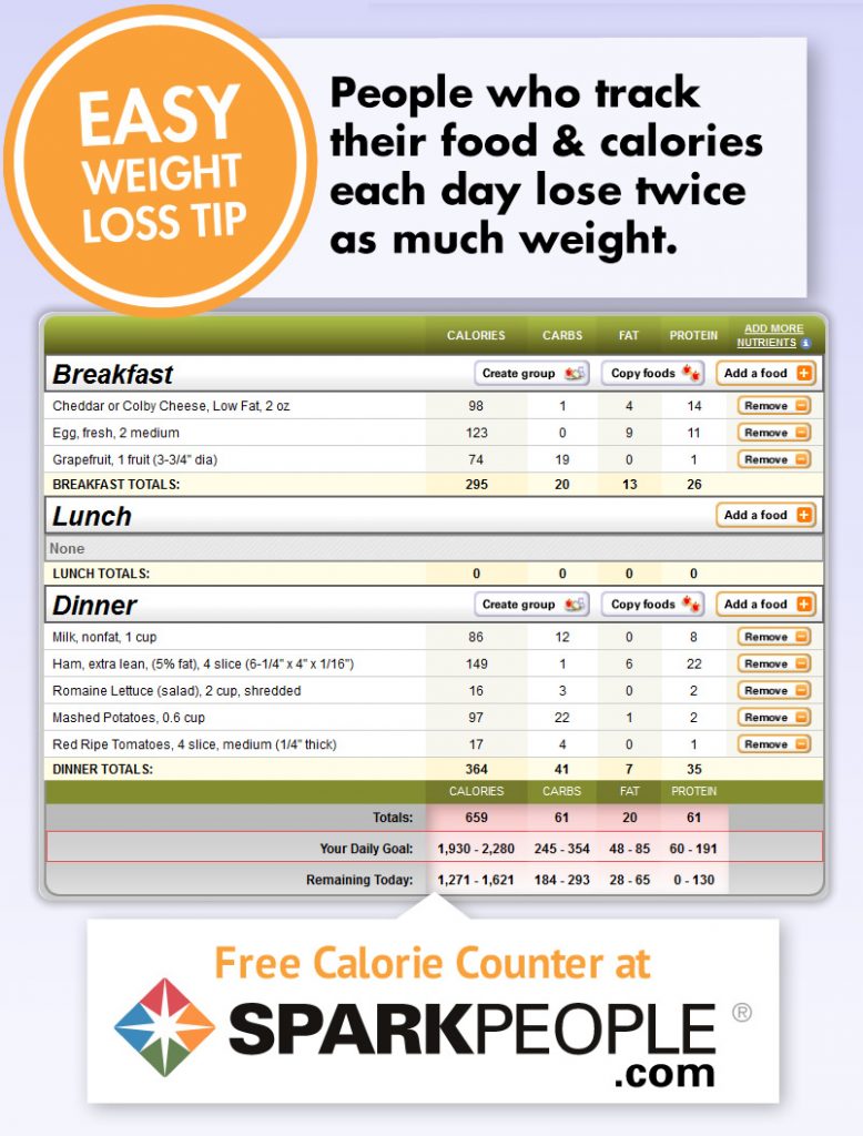 Free Calorie Counter | Sparkpeople - Free Printable Calorie Chart