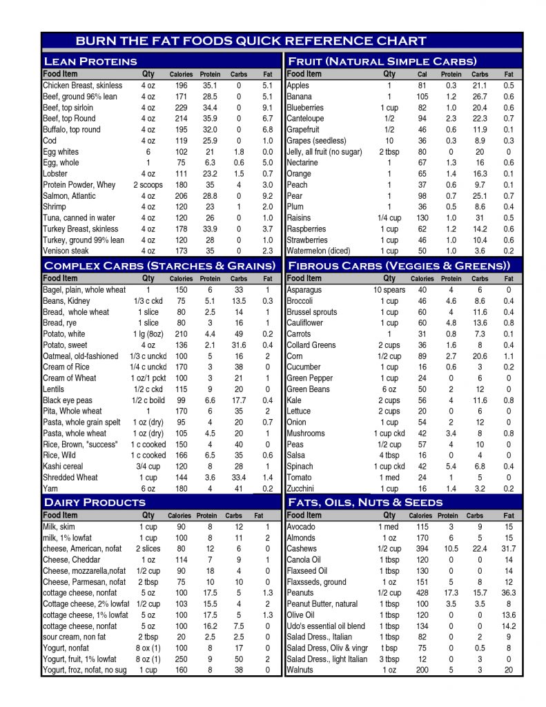 Chart: Food Calorie Chart – Free Printable Calorie Chart