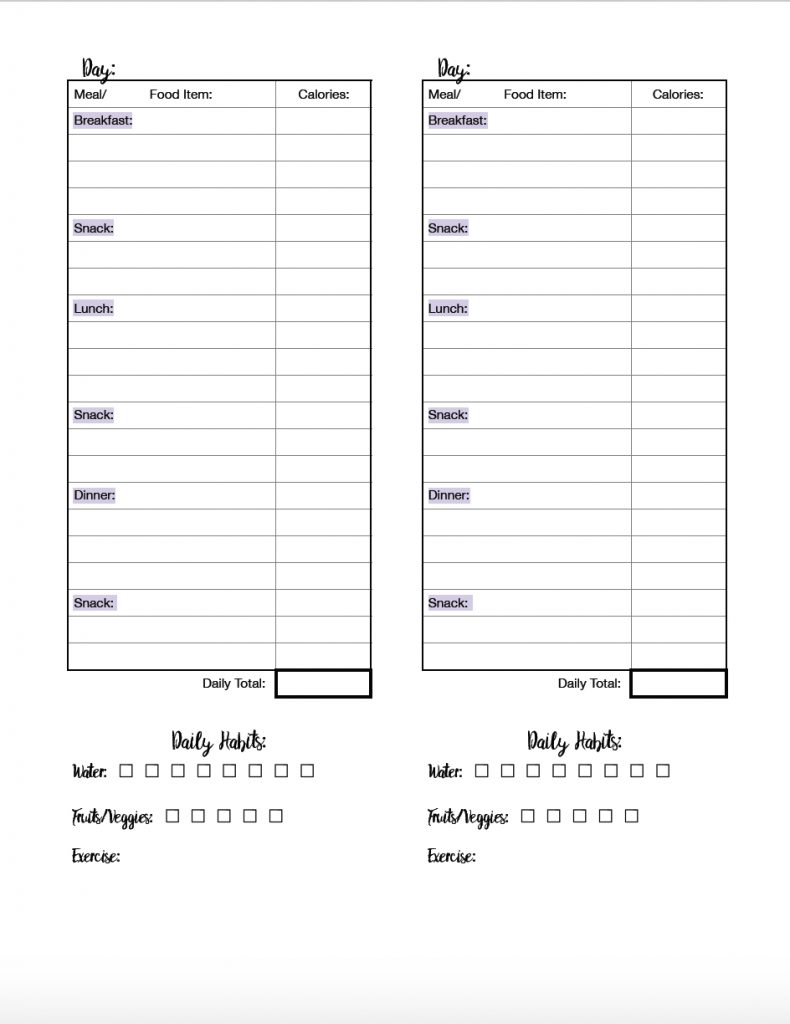 Food Log Template | Printable Daily Food Log - Free Printable Calorie Counter Journal