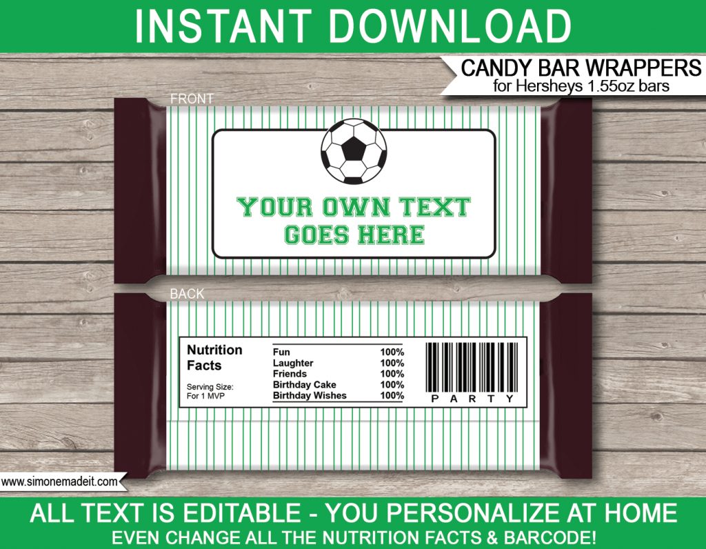 Soccer Hershey Candy Bar Wrappers Template – Free Printable Candy Bar Wrappers Templates