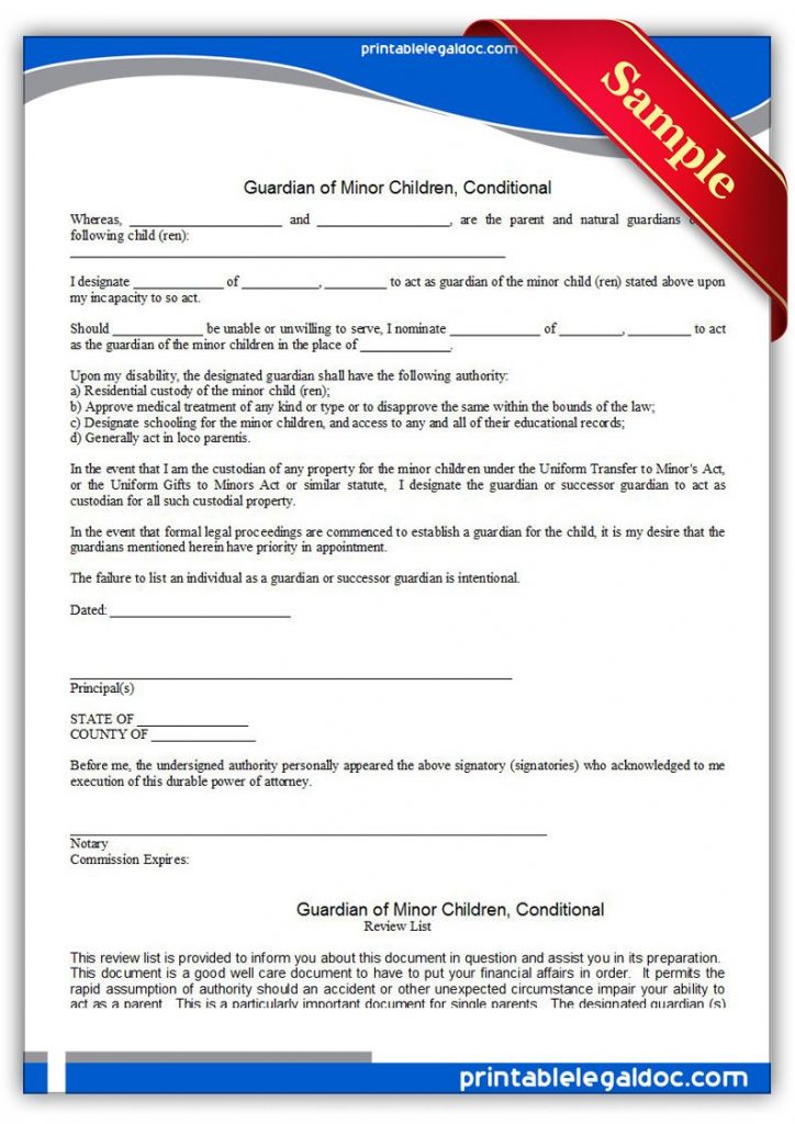 Free Printable Guardian Of Minor Children, Conditional | Sample – Free Printable Child Guardianship Forms