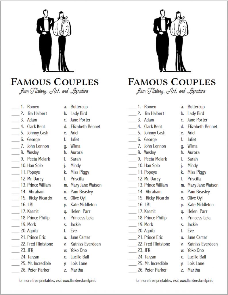 Can You Match These Famous Couples? (Free Printable) – Flanders – Free Printable Compatibility Test For Couples