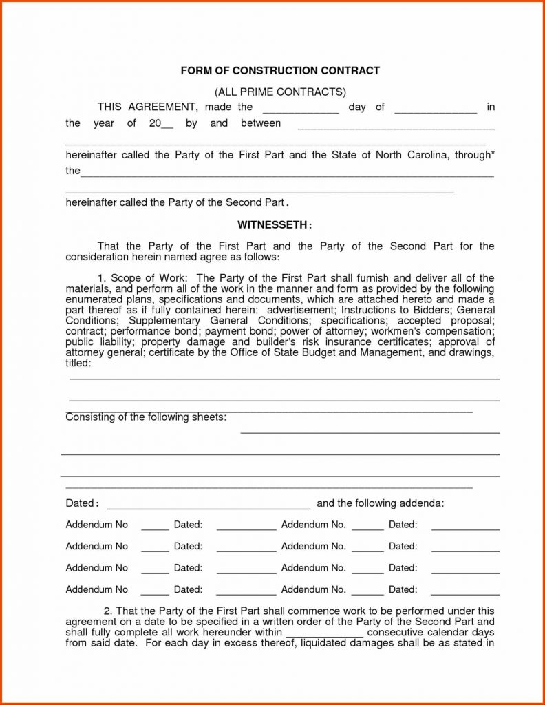 Free Printable Construction Contract Agreement With Template Plus – Free Printable Construction Contracts