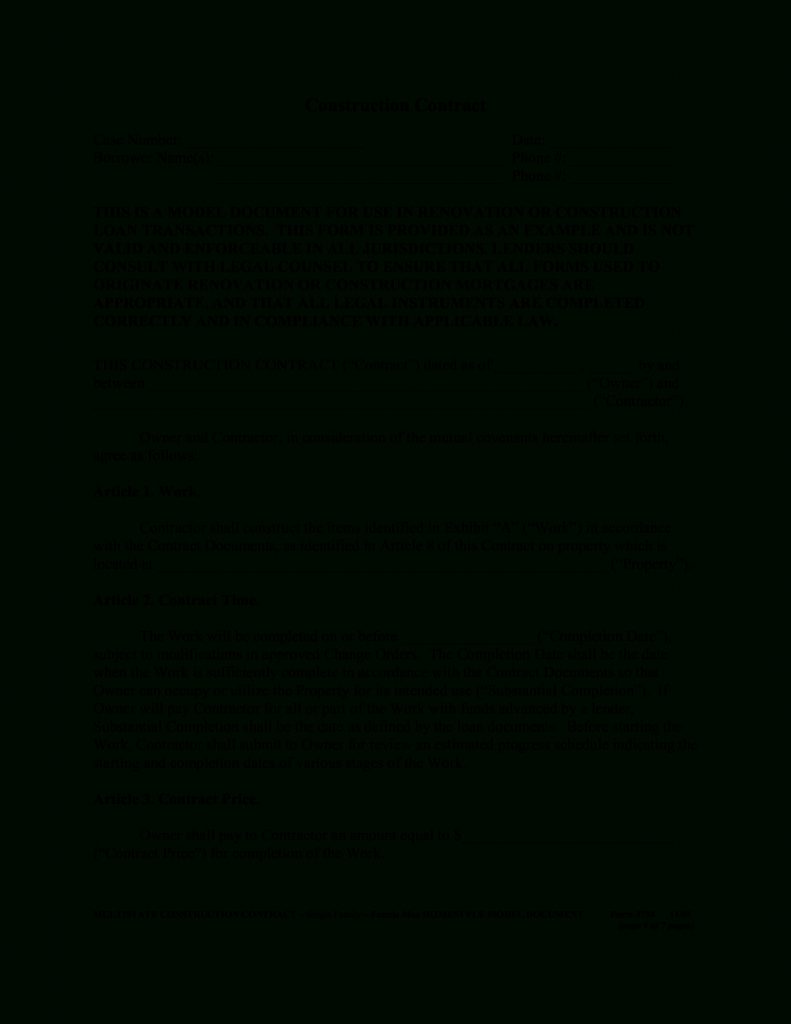 Free Printable Construction Contract | Templates At – Free Printable Contracts