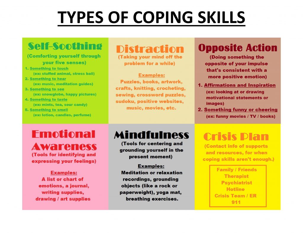 Different Types Of Coping Skills – Self-Soothing, Distraction – Free Printable Coping Skills Worksheets For Adults