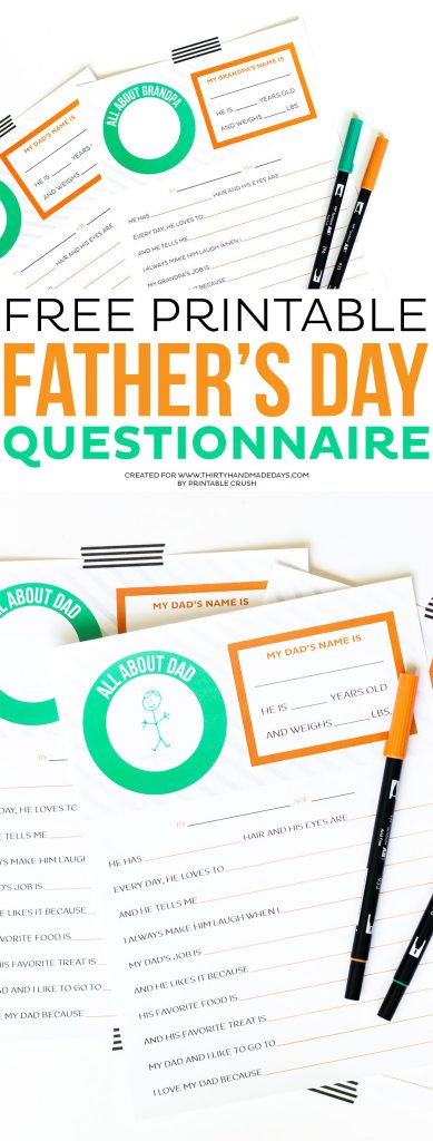 Free Printable Father's Day Questionnaire – Thirty Handmade Days – Free Printable Dad Questionnaire