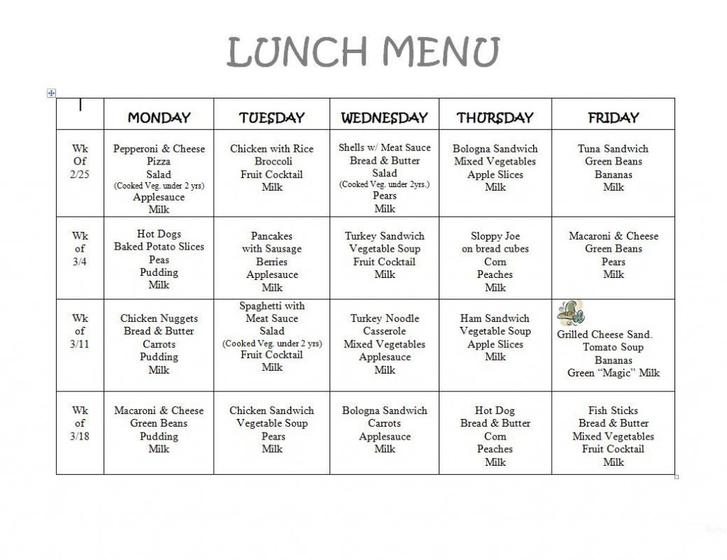 Day Care Menu – Bing Images | Menu Ideas | Lunch Menu, Kids Meals – Free Printable Daycare Menus