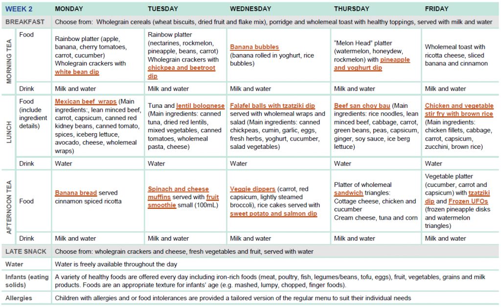 Sample Two Week Menu For Long Day Care | Healthy Eating Advisory Service – Free Printable Daycare Menus