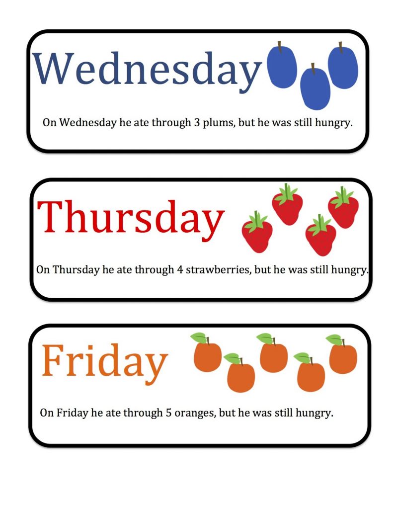 Free Hungry Caterpillar Mini Printable ~ Preschool Printables – Free Printable Days Of The Week Cards