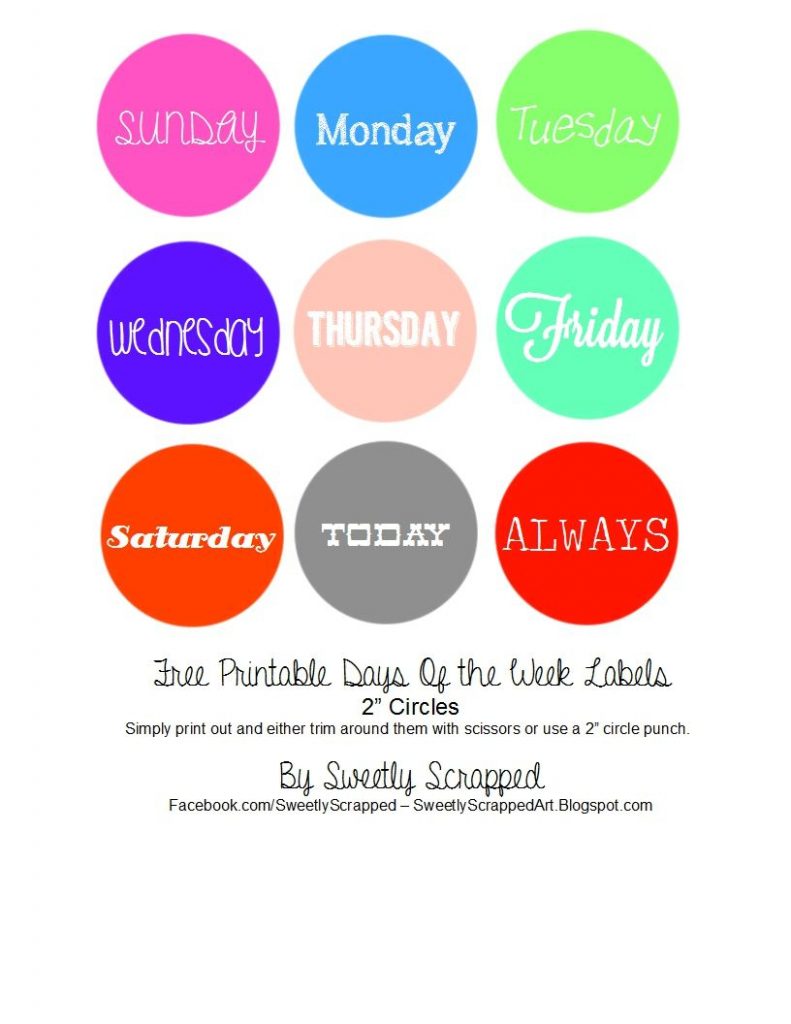 Sweetly Scrapped: Free Printable Days Of The Week Circle Labels – Free Printable Days Of The Week Cards
