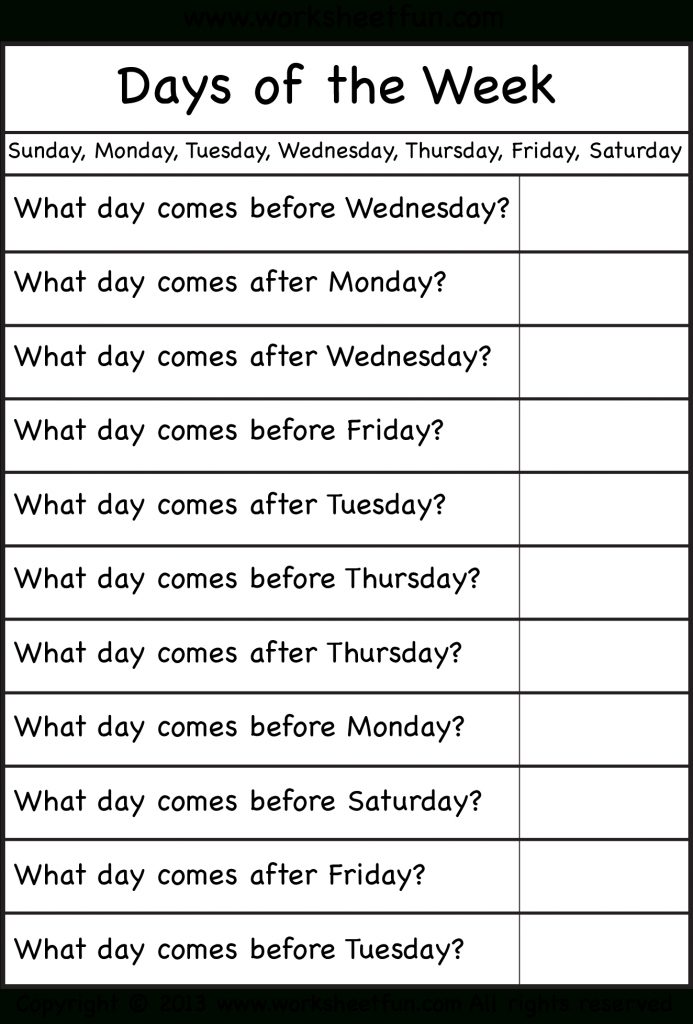 Days Of The Week – Worksheet / Free Printable Worksheets – Worksheetfun – Free Printable Days Of The Week