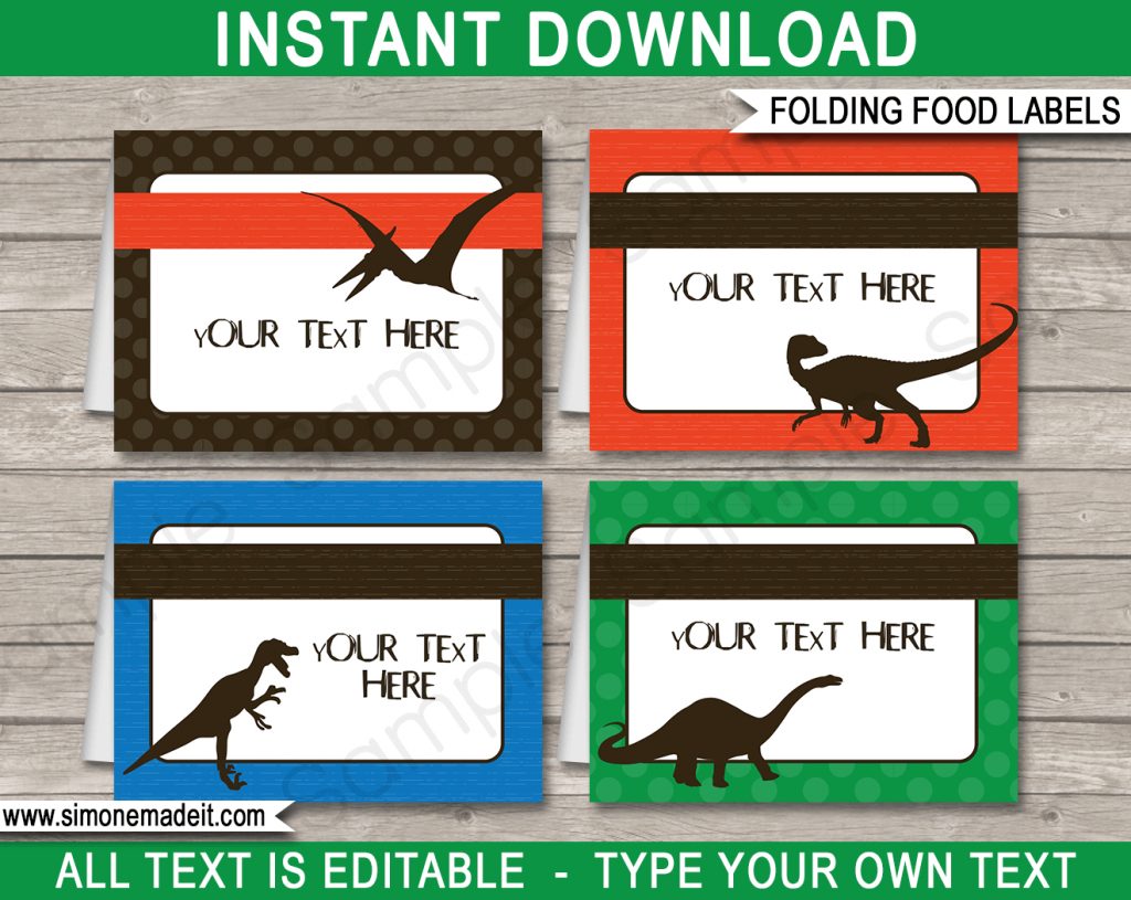 Dinosaur Party Food Labels Template – Free Printable Dinosaur Labels